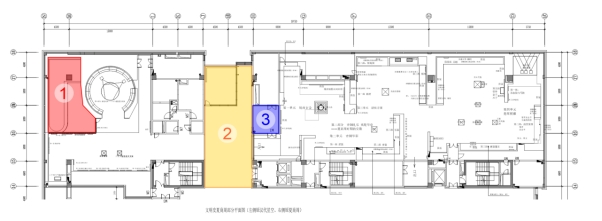 7、关于展览改陈设计施工范围的问题:①下图所示的1号红色区域平面图上标注为“龙窑”,是否为本次的展览改陈设计施工范围?②下图所示的2号黄色区域为休息厅,此区域能否整体或者部分划入展厅范围?③下图所示的3号蓝色区域现为展具储存室,此区域能否划入展厅范围?