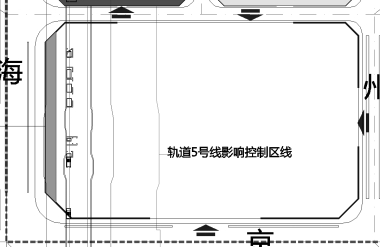 4、依据“上海路中学 控制性详细规划CAD.dwg”文件中轨道影响控制区(线)与轨道严格控制区(线)之间是否可以设置地下机动车库及地上建筑物?