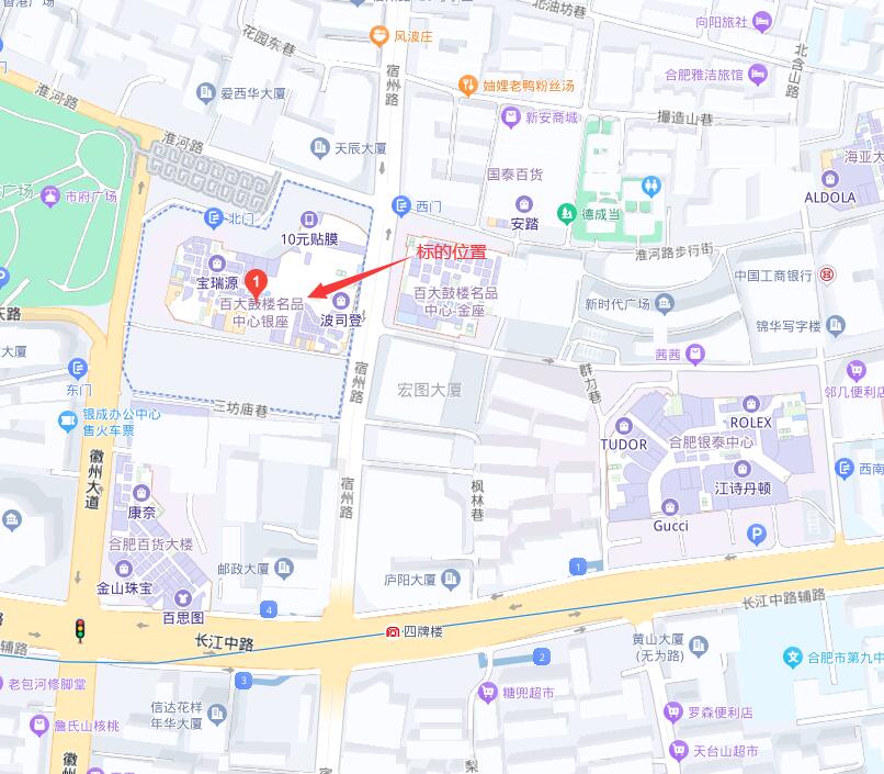 | 1.标的坐落位置:合肥市徽州大道绿都商城A区三层。