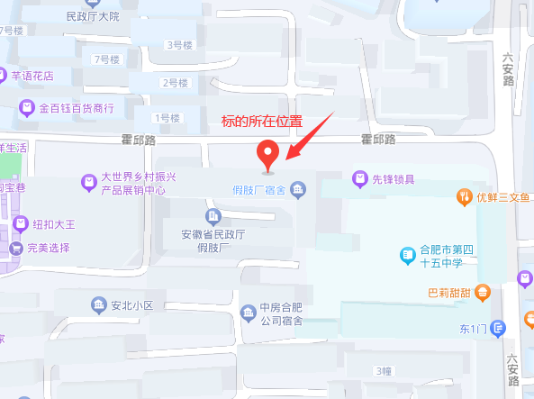 | 1.标的坐落位置:合肥市六安路65号(原25号)霍邱路东段南4号。