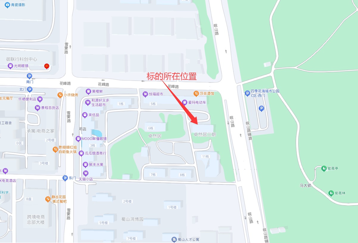 |   1.卓然居(蜀三)1#楼公租房位于合肥市蜀山区花峰路与雪霁路交汇处东南角。经营房产为框架结构,层位为1-2层,建筑面积约684.14㎡,面积仅供参考,以实际移交面积为准,实际移交面积存在差异的,不调整成交价格。具体区域范围由意向方自行向委托方咨询了解确认。